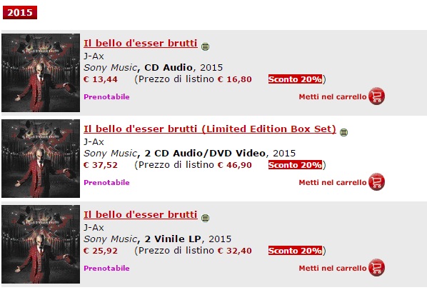 Ecco lo screenshot delle tre versioni, tratto da ibs.it: