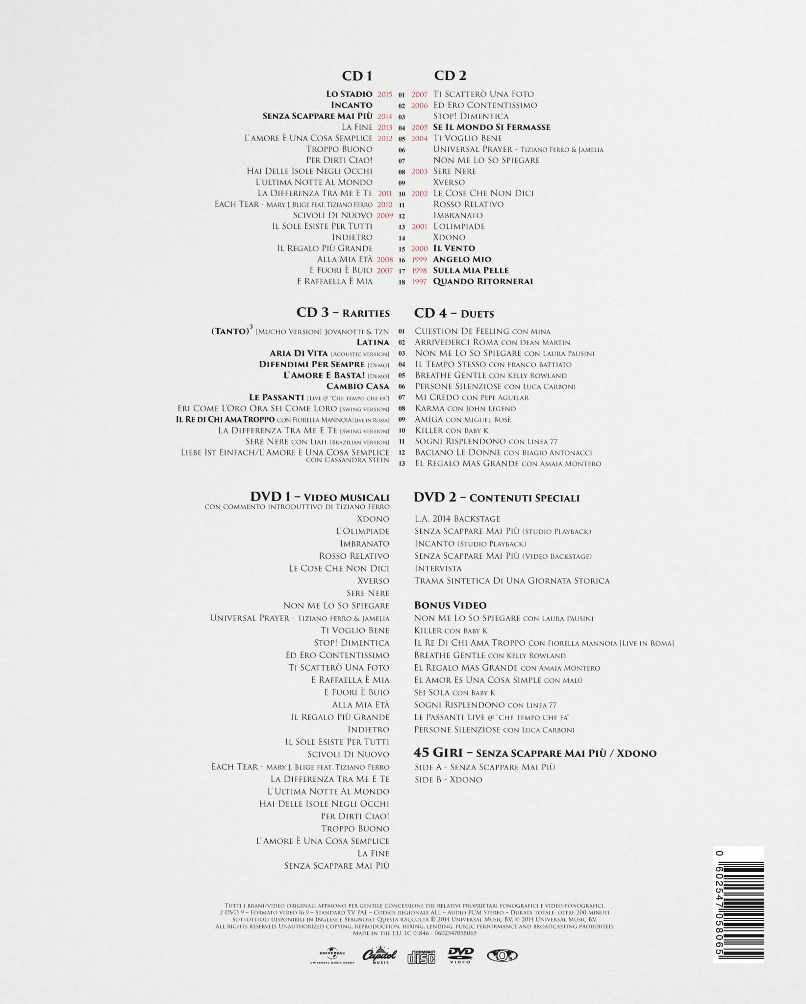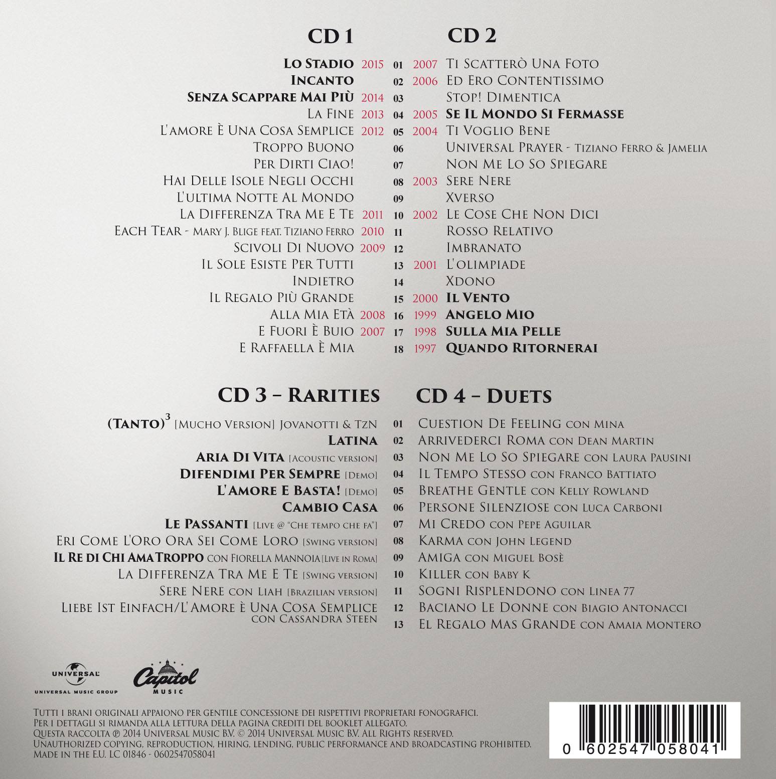E’ stata reso pubblico il retro della varie versioni del Best of Tiziano Ferro e, come avevamo già intuito, sarà la versione 4 cd a contenere un totale di 61 canzoni e 16 inediti.