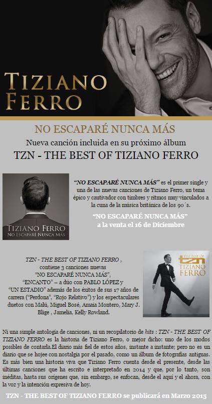 Dopo che in Italia il disco TZN – The Best of Tiziano Ferro è un progetto completamente avviato, come dimostrano i record di vendita macinati in poche settimane (certificato disco di platino in soli quindici giorni) e l’attenzione di fan e media che non accenna a placarsi, per Tiziano Ferro è tempo di iniziare ad interessarsi al suo pubblico internazionale, iniziando questa nuova avventura in parallelo al progetto italiano, con No Escaparé Nunca Más versione in spagnolo di Senza scappare mai più, che anticipa il rilascio della versione spagnola della raccolta uscita in Italia a fine novembre.