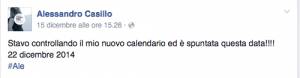 E così proprio ieri, 22 dicembre, è uscito Tutto il mondo parla di noi con relativo videoclip, probabilmente ultimo estratto dall’album del vincitore di Sanremo Giovani 2011 in attesa del nuovo disco che dovrebbe veder luce nel 2015. Casillo tra l’altro aveva da poco debuttato in libreria con il libro #Ale tutto il mio mondo uscito il 22 ottobre per Fabbri editore.