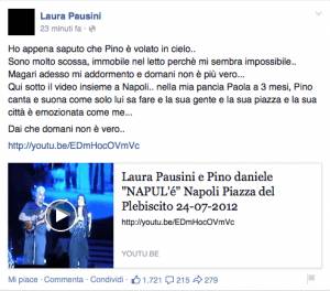 Un’incredula Laura Pausini ha invece pubblicato un video che la vede cantare insieme al cantautore sulle note della celebre Napul’é e manifestare la sua tristezza tramite questo messaggio: