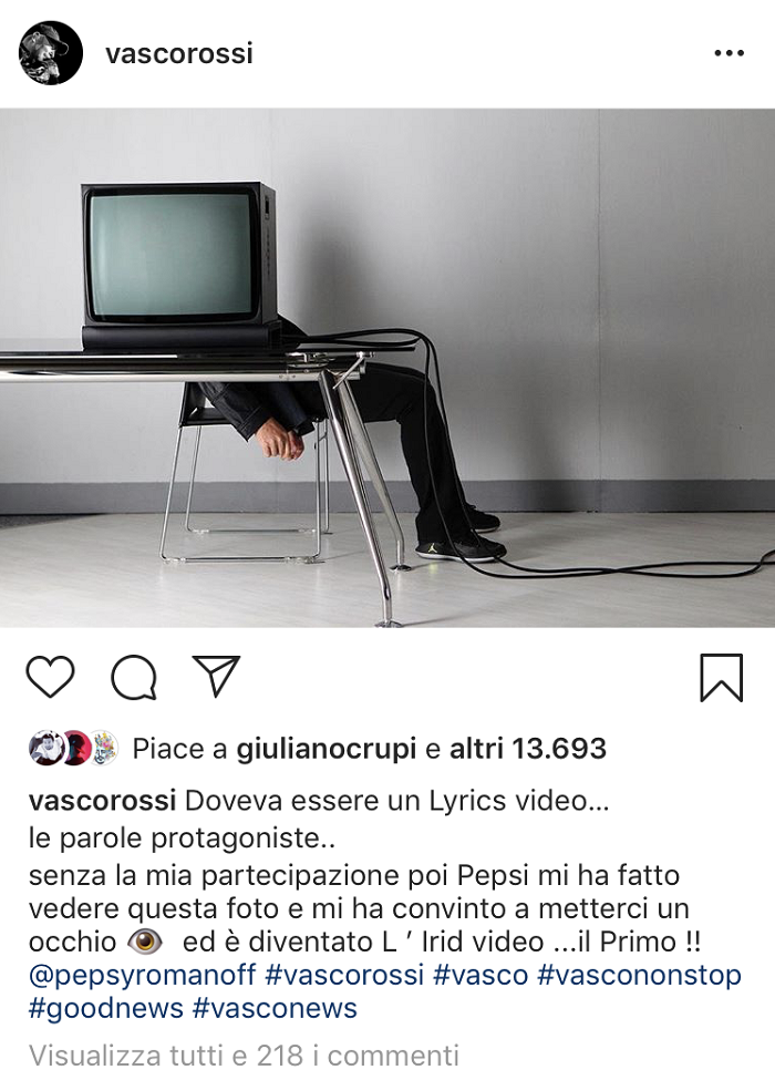 Doveva essere un Lyrics video… le parole protagoniste.. senza la mia partecipazione poi Pepsi mi ha fatto vedere questa foto e mi ha convinto a metterci l’occhio ed è diventato l’Irid video… il Primo!!