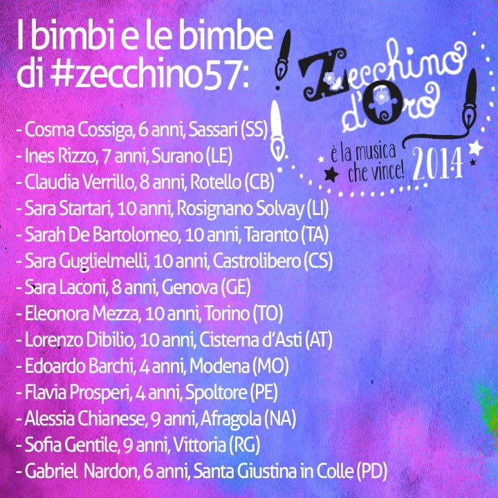 Ecco i nomi dei bambini (in rigoroso ordine alfabetico) che interpreteranno le canzoni in gara: