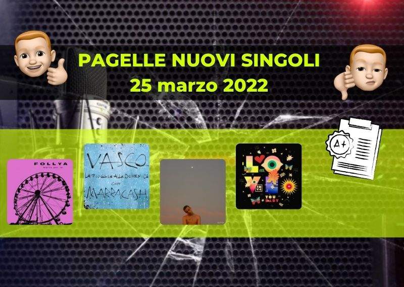 Pagelle nuovi singoli italiani in uscita venerdì 25 marzo 2022 a cura del critico musicale Fabio Fiume.
