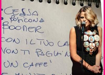 Durante il primo appuntamento della rassegna "Suono di sabato all'Arca", la cantautrice ha intonato il brano insieme ad Ambra Angiolini.