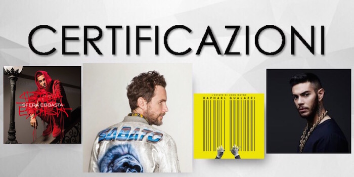 Certificati questa settimana tra gli italiani Jovanotti, Emis Killa, Benji & Fede, Raphael Gualazzi, El Raton e Sfera Ebbasta.