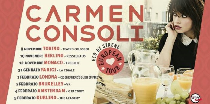 Carmen Consoli annuncia le date live dell'Eco di Sirene European Tour e l'uscita, nel 2018, del nuovo album.