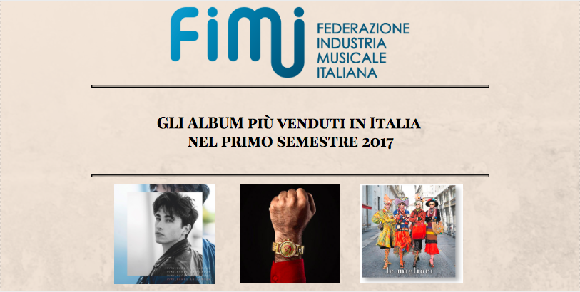 Ecco la classifica di vendita degli album in Italia nel 1°semestre 2017 fornita da FIMI. Riki in pochi mesi sbaragli tutti e vola al 1° posto.