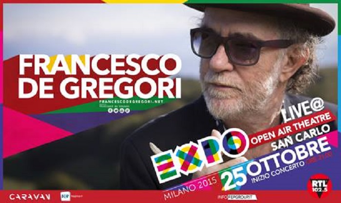 Francesco De Gregori sarà protagonista con un live dell'evento di chiusura di Expo Milano 2015 e il 30 ottobre a La Feltrinelli presenta il nuovo album.