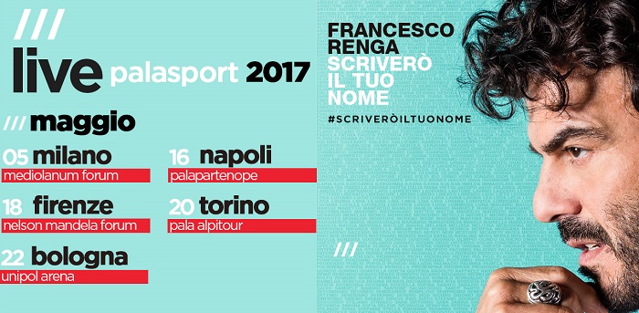 Francesco Renga annuncia i nuovi appuntamenti dai vivo del 2017 del tour "Scriverò il tuo nome Live nei Palazzetti".