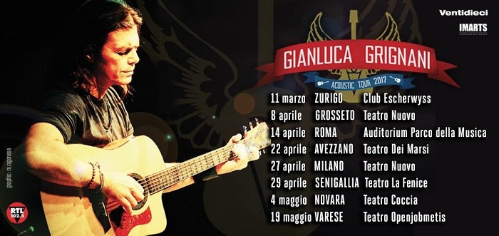 Gianluca Grignani annuncia i primi live del 2017. Si parte a marzo da Zurigo. Biglietti in vendita dal 27 gennaio.