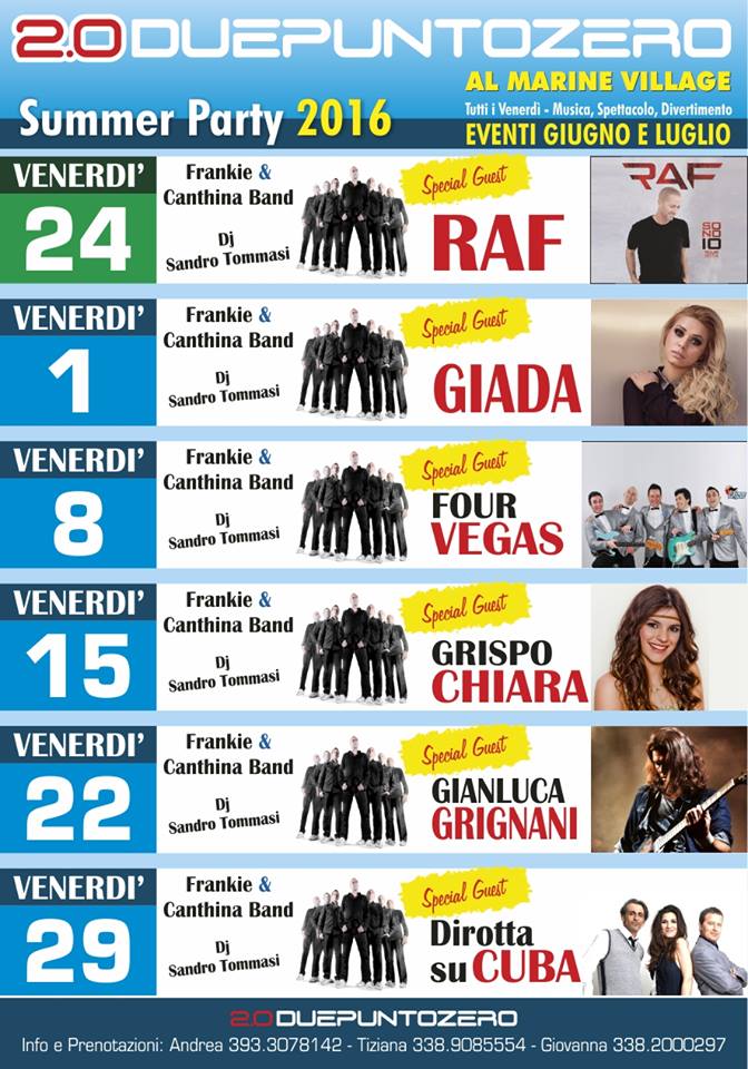 Dopo una grande stagione invernale anche l'estate del 2.0 Duepuntozero è all'insegna della musica live con Grignani, Dirotta su Cuba e.
