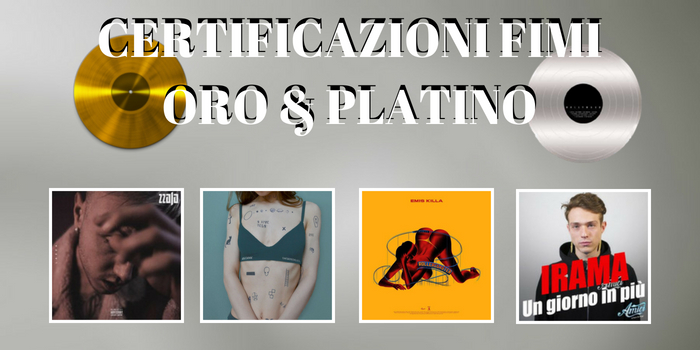 Ecco le certificazioni della settimana a cavallo tra la fine di luglio e l'inizio d'agosto.. Thegiornalisti, Irama, Lazza, Emis Killa.
