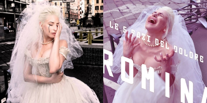 Ha fatto parlare i media con le sue spose affrante e stupito con il singolo Le 5 Fasi del dolore Ora ecco il videocumentario di Romina Falconi.