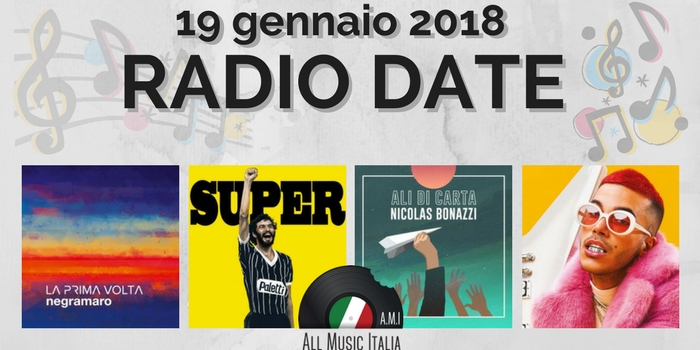 Ecco l'elenco delle canzonidel radio date del 19 gennaio. Da segnalare nuovi singoli dei Negramaro, Matia Bazar e Sfera Ebbasta.