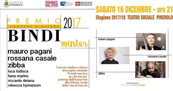 Sabato 16 al Teatro Sociale di Pinerolo si svolgerà il Premio Bindi Winter - Festival della Canzone d’Autore dedicato all'artista genovese.