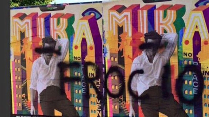 I manifesti del concerto di Mika vengono imbrattati con la parola "Frocio" e in rete parte l'hashtag #rompiamoilsilenzio appoggiato dagli artisti italiani.