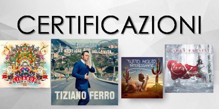 Ecco le nuove certificazioni FIMI della settimana. Negli album traguardi per Sfera Ebbasta, Laura Pausini, Cremonini e Giorgia.