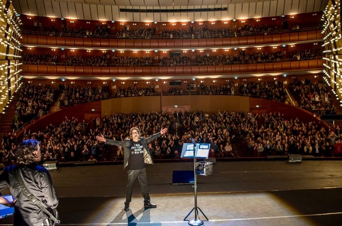 Sul palco con il cantautore, oltre alla sua band, la Ensemble Symphony Orchestra.