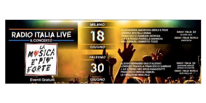 Questa sera il primo dei due grandi concerti di Radio Italia Live. Lo slogan è "La musica è più forte", scopri come partecipare!.
