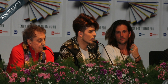 I The Kolors arrivano in conferenza stampa del Festival Di Sanremo con Tullio De Piscopo ed Enrico Nigiotti.
