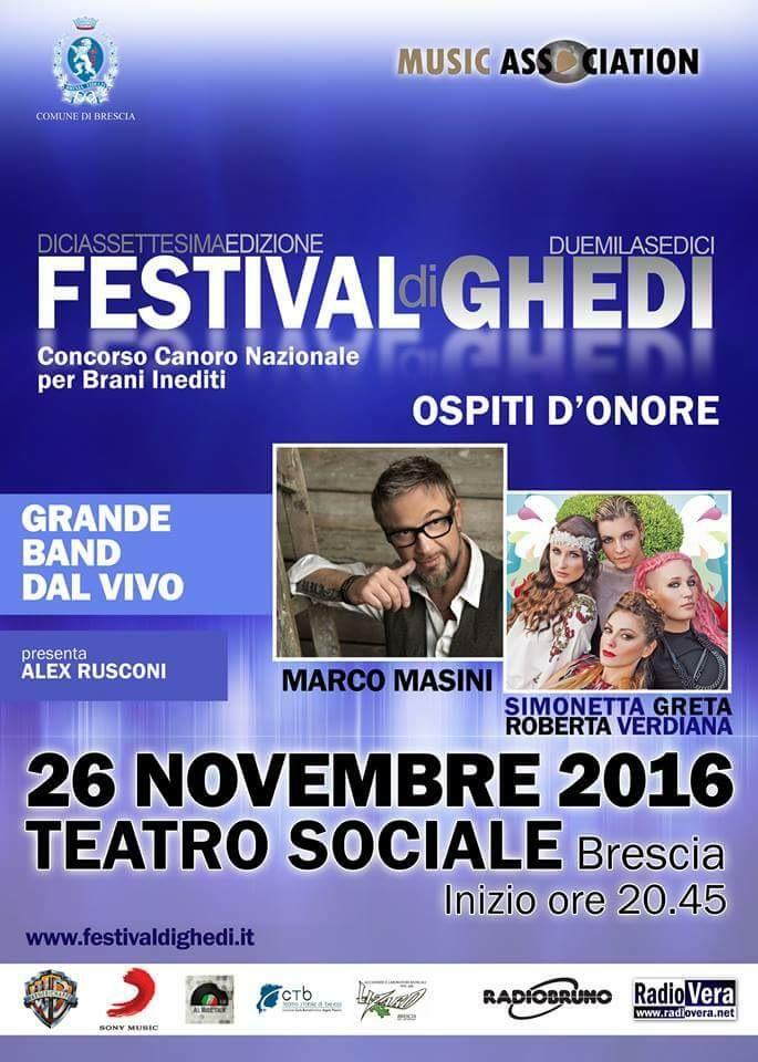 I 12 finalisti del Festival di Ghedi 2016. Scegli gli ultimi 2 nomi! Ospiti della finale Marco Masini e Simonetta,Greta,Roberta e Verdiana.