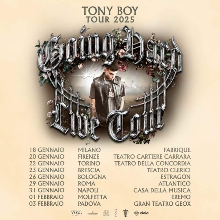 Dopo un 2024 ricco di soddisfazioni che lo ha reso sempre più uno degli artisti – rap e non solo – più interessanti degli ultimi anni, Tony Boy annuncia le date del suo Going Hard Tour Club 2025 che lo vedrà protagonista sul palco dei principali club italiani a gennaio e febbraio del prossimo anno.